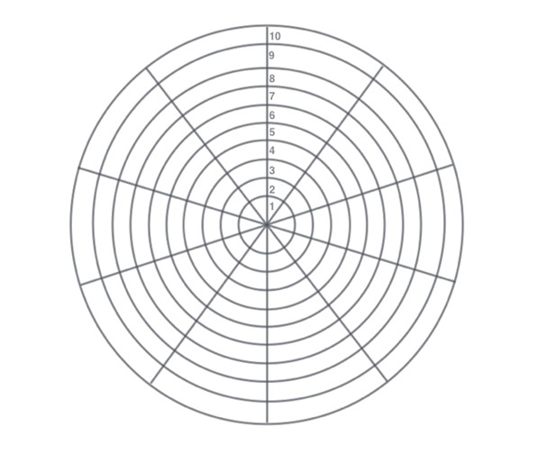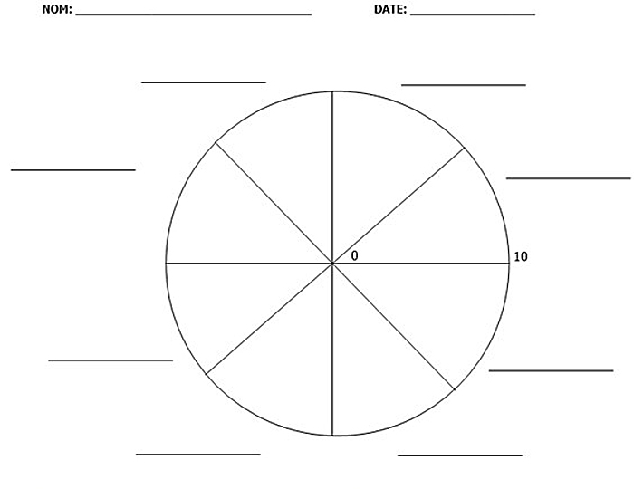 C’est une version plus détaillée de la Roue de la Vie qui comprend 10 catégories qui regroupent normalement l’ensemble de notre vie :